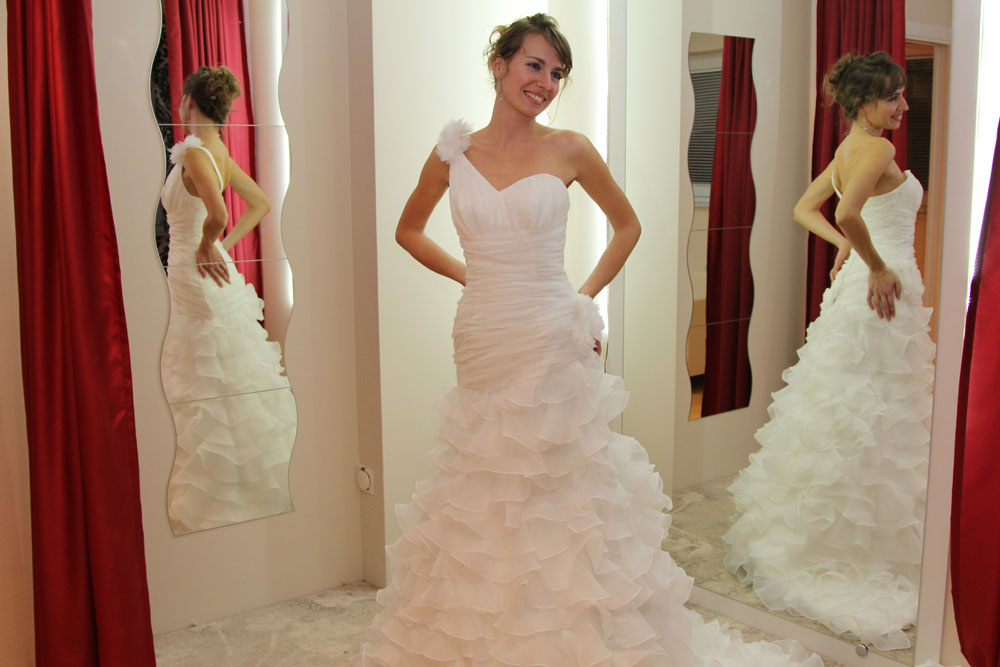 V našem salonu imamo razstavljenih preko 50 poročnih oblek različnih modelov, barv in velikosti. Obleke si lahko izposodite ali kupite. Cena izposojene obleke že vključuje šiviljske popravke ter čiščenje obleke.